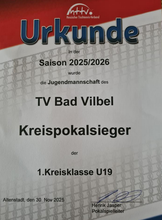 Kreispokalsieg unserer 1. Tischtennis Jugendmannschaft